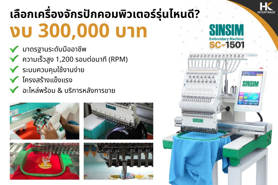 เครื่องจักรปักคอมพิวเตอร์คุณภาพสูงแบรนด์ซินซิม รองรับการทำงานหลากหลาย